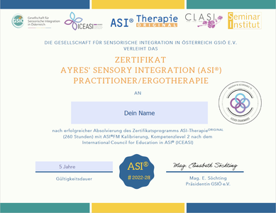 Wird die Behandlung zusammen mit den Erörterungen in der Reflexion als "konsistent mit Ayres' SI Prinzipien" beurteilt, so erhält die Therapeut:in das GSIÖ-Abschlusszertifikat “Ayres' SI Practitioner/Ergotherapie”.